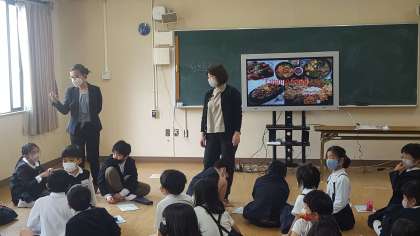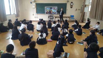 4年生は、外国語活動の授業でした。この春着任した、新しいC-NETの授業を受けました。