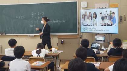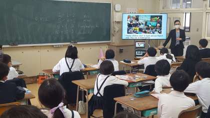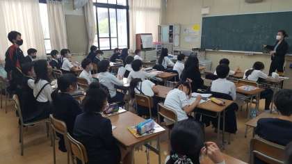 5年生は、英語の授業でした。算数の加減乗除を英語で答えた後、C-NETの母国、フィリピンについての話がありました。英語での説明でしたが、しっかり聞きとっていました。