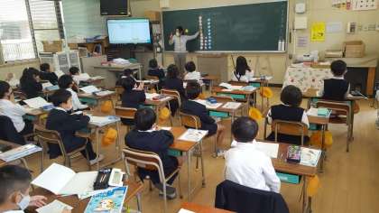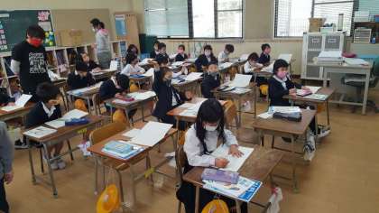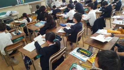 2年生は、算数の授業でした。グラフの学習でした。色別で仲間分けをしていました。きちんと数を数えながら分類できていました。
