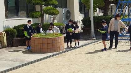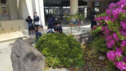 3年生は、理科の授業でした。理科は、3年生から学びます。外に出て春を見つけていました。見つけたことをノートに書いていました。
