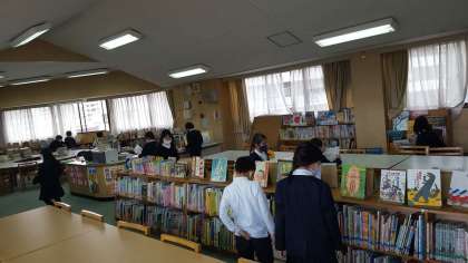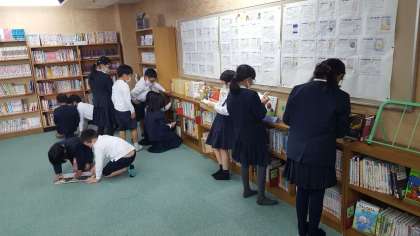 4年生は、読書活動の授業でした。支援員の先生から、図書館についてのガイダンスを受けてから、借りたい本を探しました。聞いた話を参考にし、読みたい本を見つけて、たくさん本を読んでください。