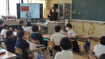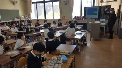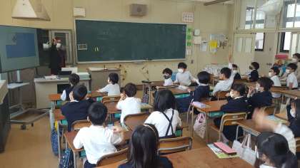 3年生は、教室で外国語活動の授業でした。いろいろな国の国名とあいさつを英語で学んでいました。とってもいい発音であいさつをしていました。