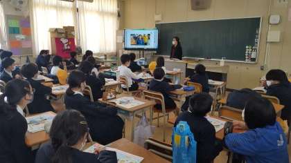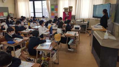 6年生は、英語の授業でした。好きなことや誕生日を英語で話していました。これからもC-NETといろいろなことで会話を楽しんでください。