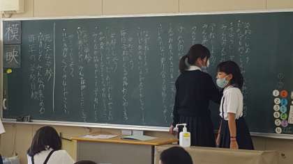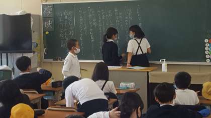 6年生は、学級活動の授業でした。みんなで学校の目標を考えていました。たくさん意見が出て、黒板の板書がいっぱいになりました。6年生が率先していい学校を創造していってください。