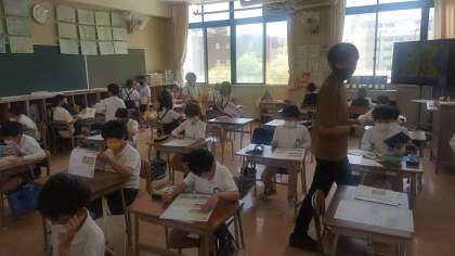 1年生は、算数の授業でした。みんな積極的に手を挙げて発表していました。