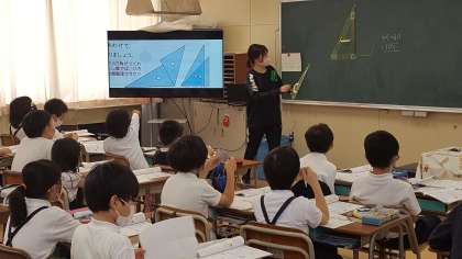 4年生は、算数の授業でした。図形の角度の学習をしていました。この単元は、高学年につながる内容なのでしっかりがんばりましょう。