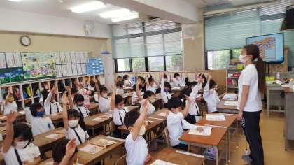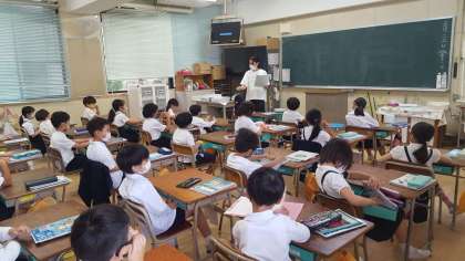 1年生は、算数の授業でした。手を挙げて積極的に発表していました。素晴らしいですね。