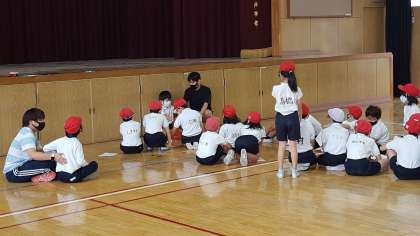 1年生は、国語の授業でした。先生の質問をよく聞き、みんな積極的に手を挙げて答えていました。
