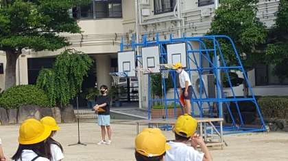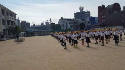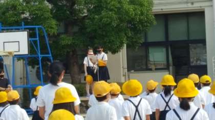 全校朝会を運動場で行いました。久しぶりの運動場での集会でした。校長先生からは、いじめについて考える日の話がありました。「いじめは絶対に許されない。気になることがあれば、周りにいる人に伝えよう。」との話がありました。