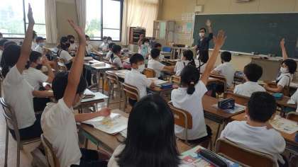 5年生の英語学習の様子です。誕生日を英語で答えていました。自分の誕生日をきれいな発音で発表していました。