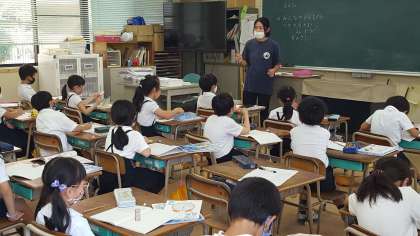 2年生は、算数の授業でした。長さについて学習していました。皆さんは「物差し」と「定規」に違いがあるのを知っていますか?2年生は、知っています。違いは、2年生に聞いてみてください。
