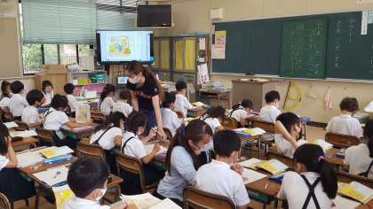 2年生は、算数の授業でした。ハガキの縦横の長さを調べていました。子ども達は、丁寧に測っていました。