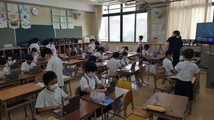 3年生は、情報教育の授業でした。ちょうどパソコンを起動させているところでした。。パソコンは毎日使うことで、スキルも向上します。また、すごく役に立つツールになります。