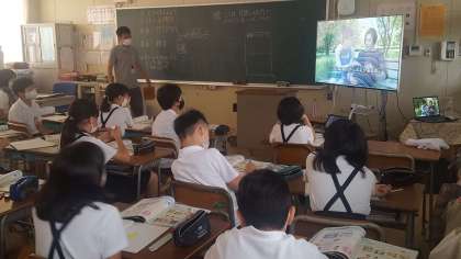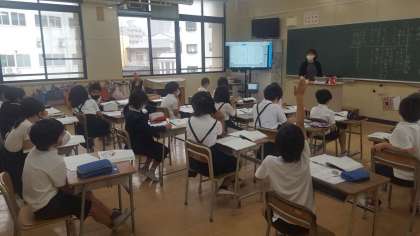 4年生は、国語の授業でした。物語文の登場人物の心情について考えていました。自分の意見を積極的に発表していました。