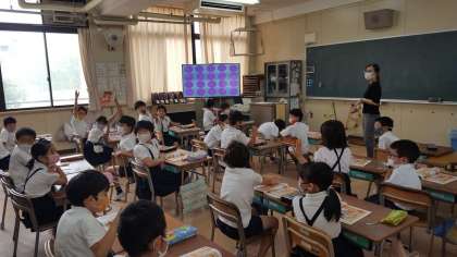 3年生は、外国語活動の授業の様子です。20までの数字の学習をしていました。20から逆に数えていました。逆だと難しいですね。