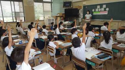 1年生の算数の授業の様子です。のこりはいくつ?の学習をしていました。ひき算ですね。難しいけどがんばりましょう。
