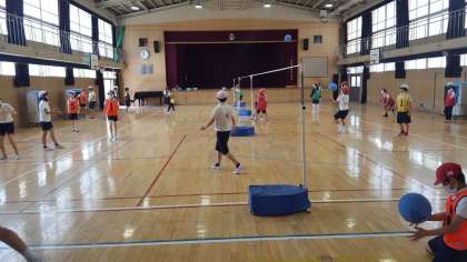 6年生の体育の授業の様子です。講堂で、ソフトバレーボールの練習をしていました。試合が楽しみですね。