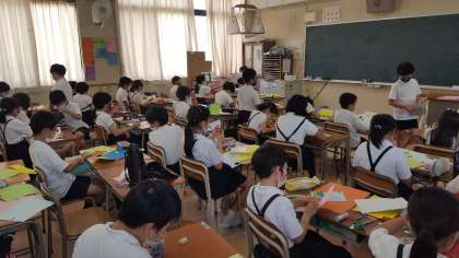 4年生の図画工作の授業の様子です。立体カードを作っていました。カードを開くと何が飛び出てくるのでしょうか。完成したら見たいですね。