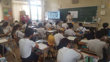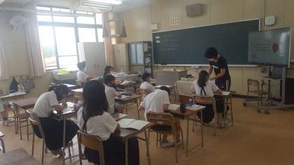 5年生の算数の授業の様子です。習熟度別2分割で授業をしていました。比例について考えていました。仕組みに気づくと楽しくなります。がんばりましょう。