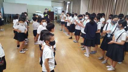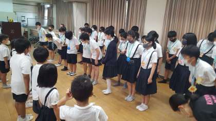 1年生が、今まで世話をしてくれた6年生に感謝をする会を開きました。