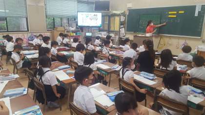 2年生の算数の授業の様子です。大きな数の学習をしていました。数のまとまりに注意しながら、学習を進めていました。