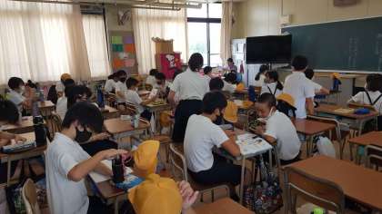 5年生の国語の授業の様子です。はがきの書き方について学んでいました。みんなは誰宛てで出すのでしょうか。気になります。