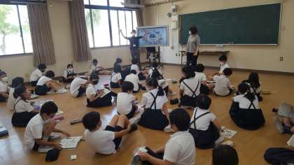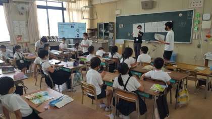 3年生の外国語活動の様子です。英語で漢字の学習をしていました?何画で書くのかや、部首と作りを組み合わせて漢字を作ったりと国語の学習を英語で学んでいました。