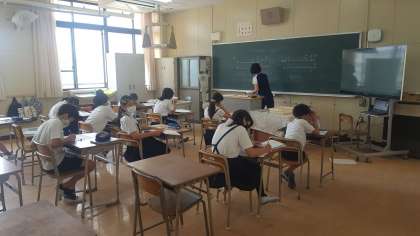 5年生の算数の授業の様子です。習熟度別2分割で授業をしていました。□を使った式の学習でした。方程式につながる難しい内容に挑戦していました。