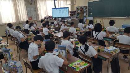 1年生は、算数の授業の様子です。カードを使って動物の分類をしていました。みんな丁寧に、数の整理をしていました。