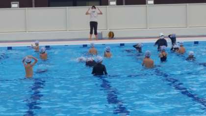 2年生のプール学習の様子です。暑い日だったのでとても気持ちよさそうでした。水に慣れる運動を楽しんでいました。