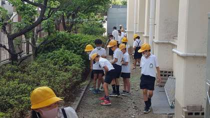 3年生の理科の授業の様子です。校庭で、生き物調べをしていました。アオスジアゲハを捕まえた子もいました。