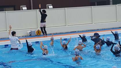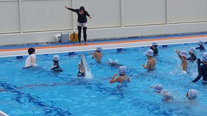 2年生のプール学習の様子です。曇り空でしたが、今日でプール学習が終わるので入水しました。昨日より教育実習に来ている先生も、最初で最後のプールに入ることができました。