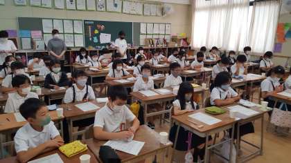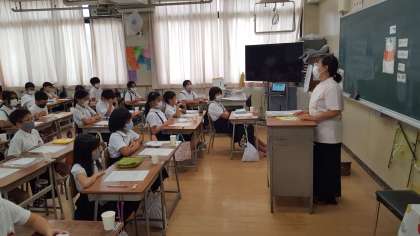 2時間目に4年生のフッ化物洗口の保健指導がありました。歯科の先生・歯科衛生士さんに来校いただき、教室と理科室を使って指導していただきました。これからも自分の歯を大切にしましょうね。