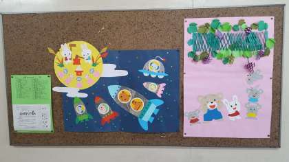 給食室の掲示が変わりました。一足早く秋の風情です。