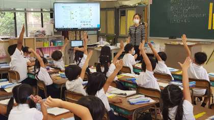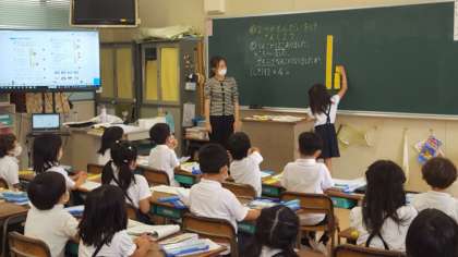 1年生の算数の授業の様子です。たし算の学習をしていました。みんな発表がしたくて積極的に手を挙げていました。素晴らしいですね。