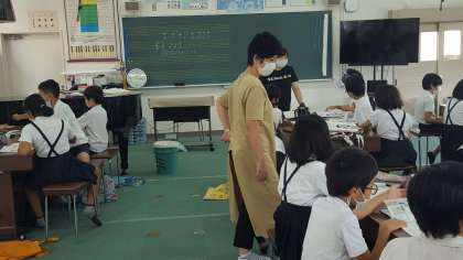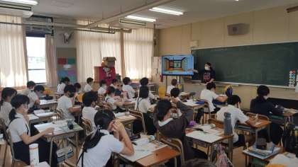6年生の社会の授業の様子です。室町時代の文化について学んでいました。現代につながるものが多く生まれた時代です。書院造りや床の間、盆踊りもこの時代です。