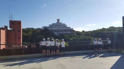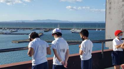 館内探検で屋上に来ました。淡路島や関空もよく見えます。