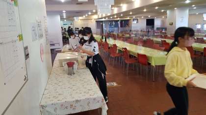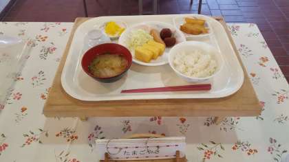 朝食の準備の様子です。今朝のメニューです。美味しそうです。
