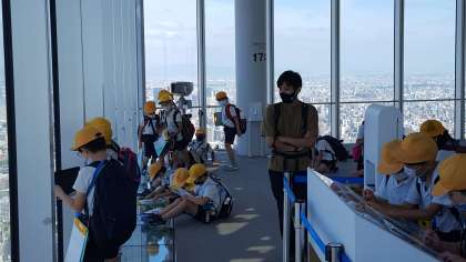 展望台の様子です。子どもたちは、パソコンも使っています。