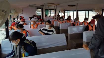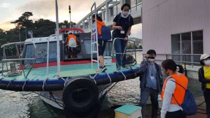 乗船しています。菅島に向かいます。波は、穏やかです。