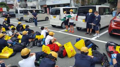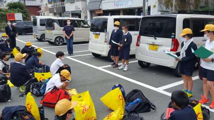 閉舎式の様子です。児童の挨拶の後、女将さんからご挨拶をいただきました。ありがとうございました。