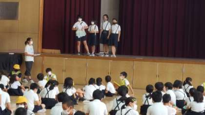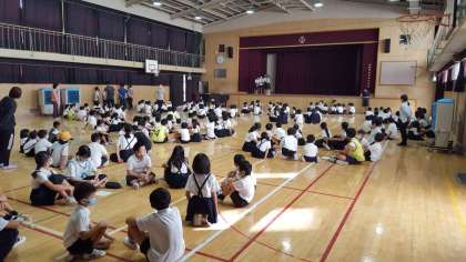 緊急事態宣言が解除になり、久しぶりに講堂で児童集会を行いました。今日は、ステレオゲームをしました。問題が6問あったのですが、2問正解した班が1位になりました。難しかったようです。