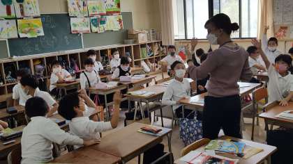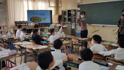 3年生の外国語活動の様子です。I like 〜 の学習をしていました。C-NETの質問に積極的に手を挙げて笑顔で答えていました。