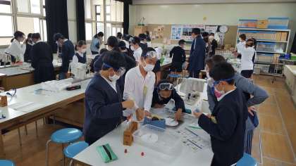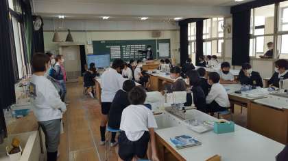 6年1組で授業研究会を行いました。教科は理科で、「水溶液の性質」の単元でした。5つの水溶液を当てる授業でした。子ども達は、一生懸命考えて、実験を行っていました。結果は全員が正確に当てることができました。子ども達にとっても楽しい授業になりました。