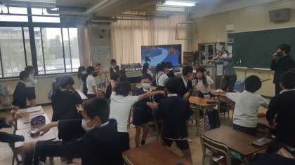 3・4年生の外国語活動の様子です。もうすぐハロウィンです。ハロウィンの画像に合わせて体を動かしていました。