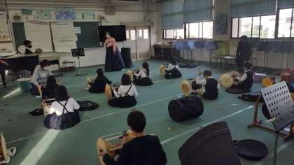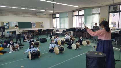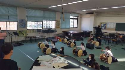 民族クラブの様子です。今日も発表会に向けてチャンゴの練習を行いました。すごく上手になりました。次からは、動きながらの演奏になります。がんばりましょう。