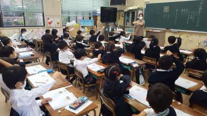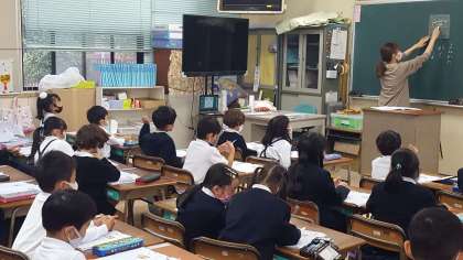1年生の国語の授業の様子です。新出漢字の学習をしていました。書き順も全員で確認していました。