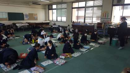 4年生の音楽の授業の様子です。日本の祭りについて学習をしていました。祭りの曲を聞いて何の祭りかを調べていました。日本では1年を通して祭りが行われているようです。