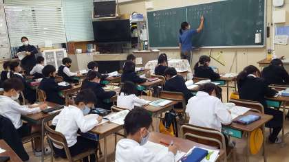2年生の算数の授業の様子です。3の段の九九の学習をしていました。特に九九は、確実に覚えることができるようにしっかりがんばりましょう。