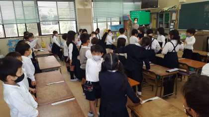 1年生の学習発表会の練習の様子です。気持ちを込めてせりふを読んでいました。身振り手振りもいれながら気持ちを込めて読む練習をしていました。